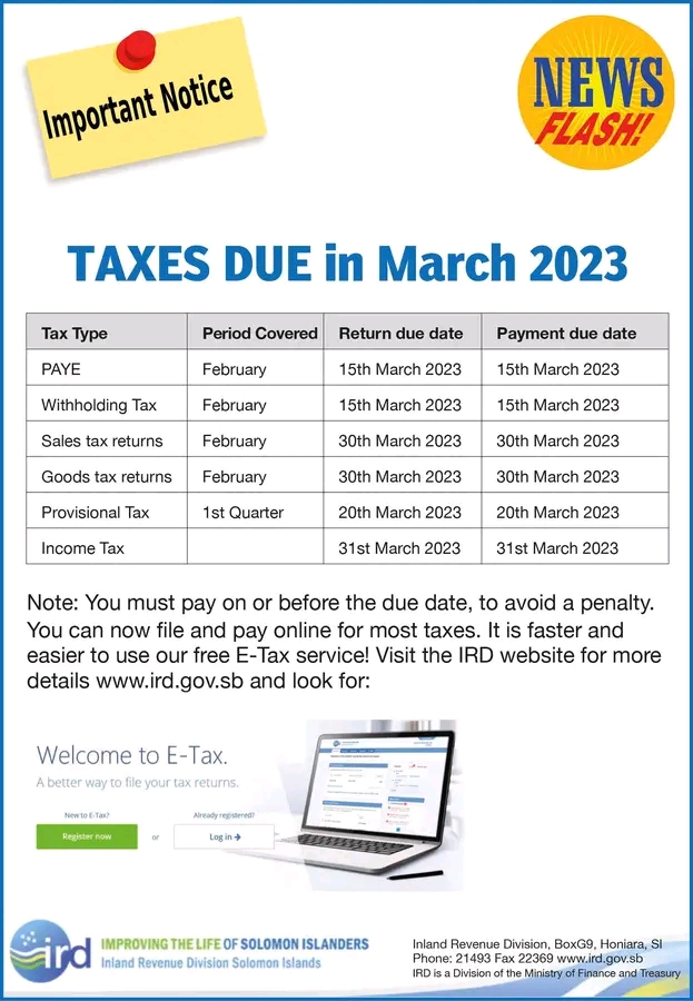 TAXES DUE IN MARCH 2023