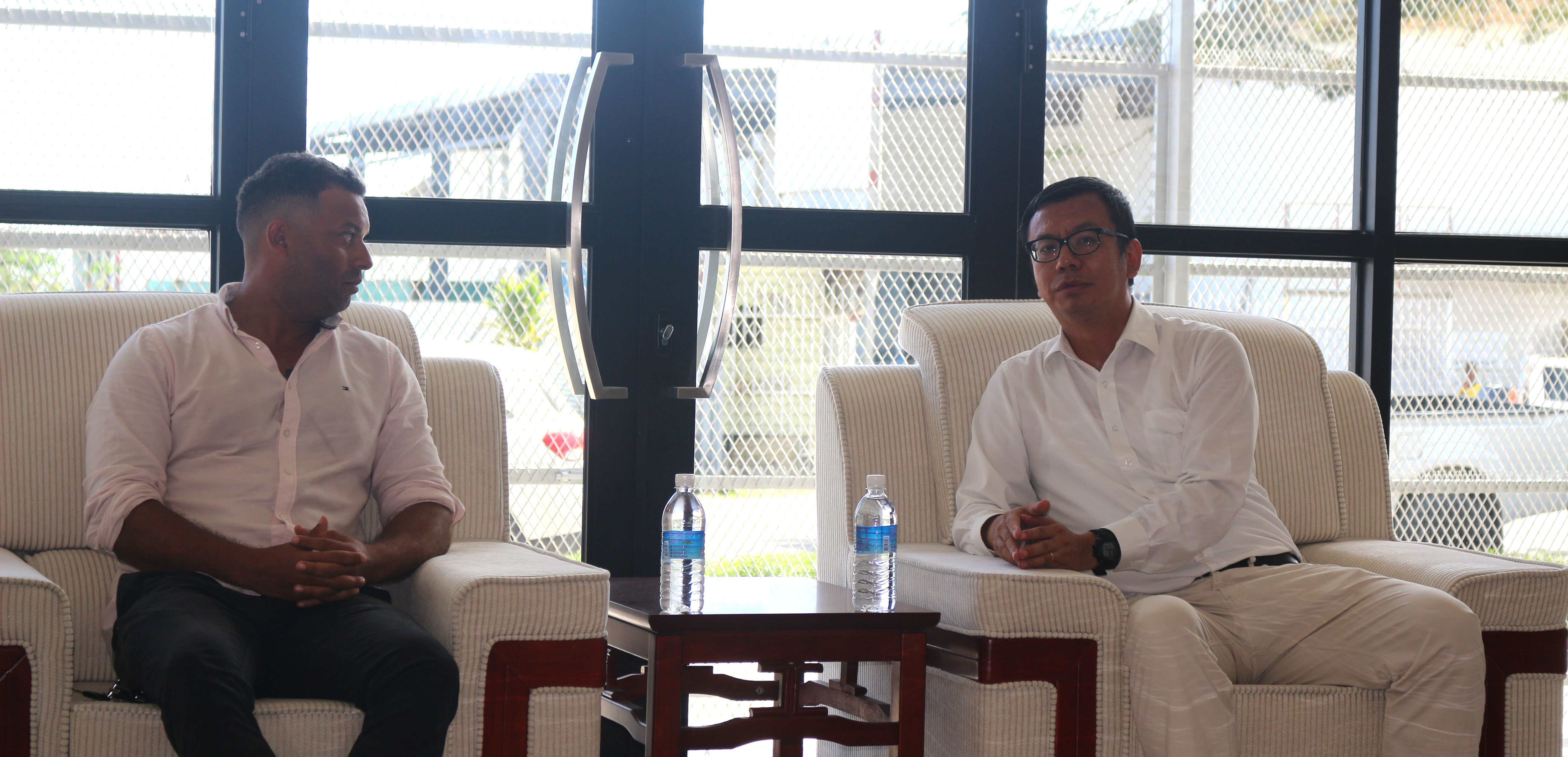 SICCI Board Chairman, Jay Bartlett in discussions with Counsellor Yao Ming, Acting Head of the Chinese Embassy in Solomon Islands.